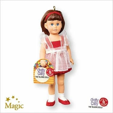 Hallmark Ornament. Plays 11 different Chatty Cathy sayings. Dimensions: 4 1/4″H, Artist: Julie Forsyth