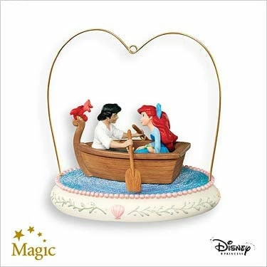 Hallmark Ornament. Wind the key to see the boat rotate and hear “Kiss the Girl.” Dimensions: 4 1/4″W, Artist: Katrina Bricker