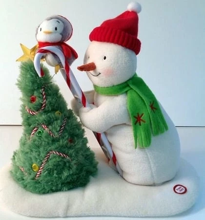 This is the plush tabletop snowman display for 2013. Press the button to hear “We Wish You a Merry Christmas” with some lyrics barked by the dog.
