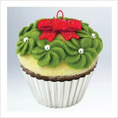 Hallmark Ornament. Dimensions: 2 1/4″ H, Artist: Ruth Donikowski. This is the 2nd ornament in the Christmas Cupcakes Hallmark Series. It is made of fabric and other handcrafted materials.