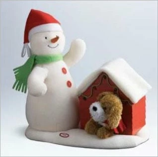 Hallmark Tabletop Plush Item. *This is an oversized item that will have an extra shipping charge of $3.00 applied at checkout. Plays “Deck the Halls.” Dog house lights up and snowman dances.