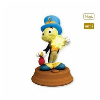 Hallmark Ornament. Dimensions: 1 3/4″ H, Artist: Ken Crow. Push a button to see Jiminy Cricket’s badge light up. Battery operated.