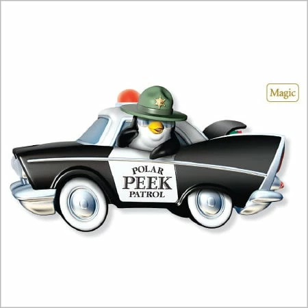 Hallmark Ornament. Dimensions: 2 1/2″ H, Artist: Tracy Larsen. This a battery operated ornament that senses motion. Lights flash and alert messages are given when someone gets too close to the tree.
