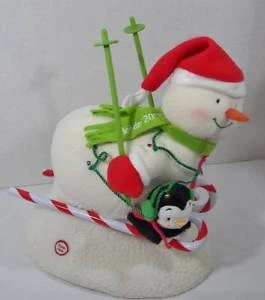 Hallmark Tabletop Plush Item. *This is an oversized item that will have an extra shipping charge of $3.00 applied at checkout. Dimensions: 1.75″ x 3″ x 2.75″. Batteries included. Plays “Jingle Bells” when you press the button. It is the ornament version of the larger plush snowmen that Hallmark releases annually.