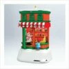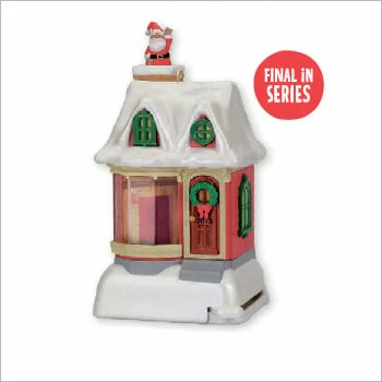 Hallmark Ornament. Dimensions: 4 3/8″ H, Artist: Ken Crow. Slide lever to see Santa pop up and down the chimney. For optional lighting effect, attach to light string. This is the fourth and final ornament in the Kringleville Hallmark Series.