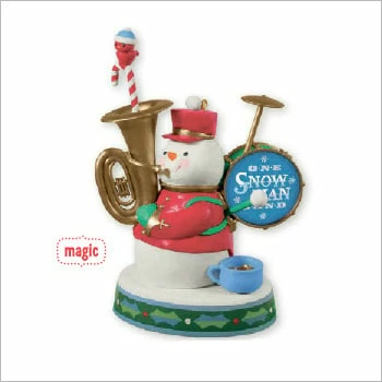 Hallmark Ornament. Dimensions: 5 1/8″ H, Artist: Becky Hottel and Robert Hurlburt. Plays “God Rest Ye Merry Gentlemen” and the snowman moves with the press of a button. Battery operated.