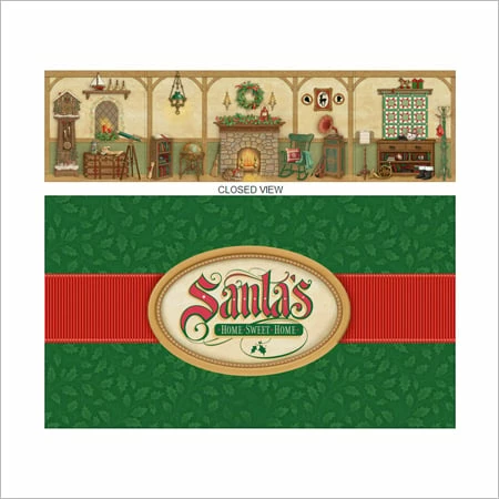 Hallmark Ornament. Closed Dimensions: 12″ x 6.5″,Open Dimensions: 24″ x 6.5″. Artist: Edythe Kegrize. This backdrop is self-standing and styled to complement Keepsake Ornaments’ annual event pieces. Rich details and traditional colors add personality to the space Santa calls home, while a nod to ornaments past provides insight into his world. This is the perfect tabletop piece to help you begin designing a space, just for Mr. and Mrs. Claus. Linen texture bound book board. It was only available to collectors who attended the 2013 KOC Event in Kansas City.