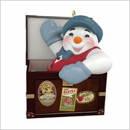 Hallmark Ornament. Artist: Tracy Larsen. This was an Event Exclusive Hallmark Ornament at the 2015 KOC Event. Box reads, “Whether by plane or by train or by ship, this traveling snowman is packed for the trip. He loves the adventure of seeing new sights, and he’s ready to go when the travel bug bites!”