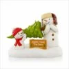 Send holiday spirits soaring with this cute Christmas tree ornament. Dressed in a polka-dotted scarf, this adorable red cardinal is perched outside his festive birdhouse—topped with a dusting of glittery snow—to “sing” his tweets and chirps along with the music of “Here We Come a-Caroling” (battery-operated).