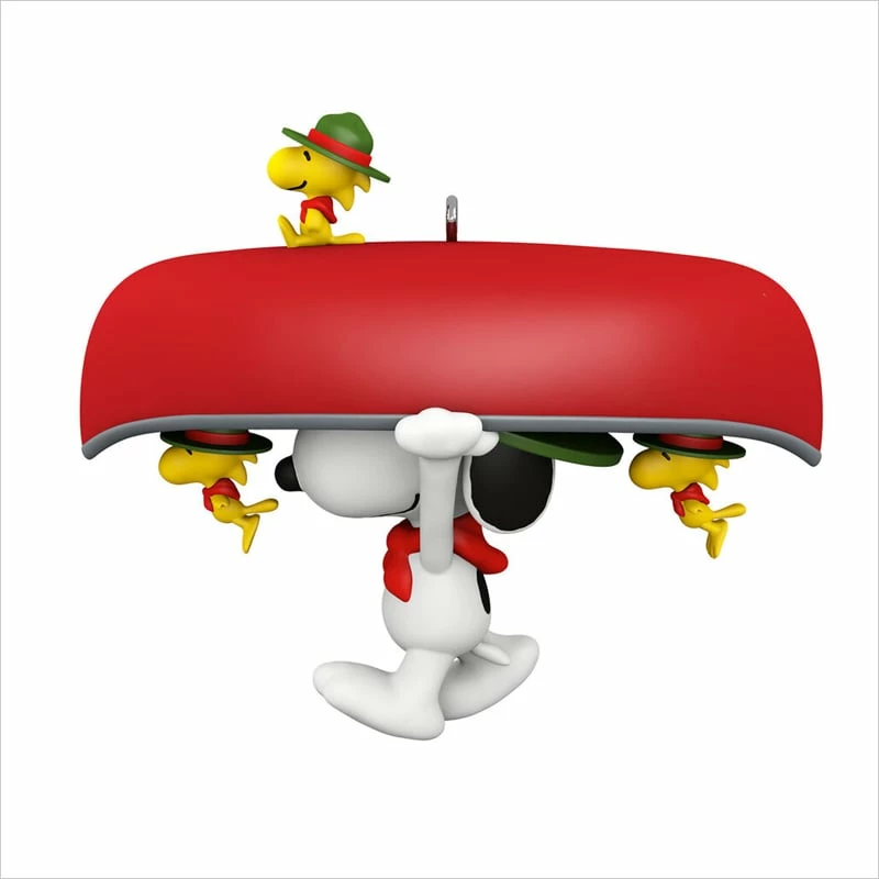 Scoutmaster Snoopy is eager to share in outdoor adventures with his Beagle Scouts while teaching them the value of teamwork. Celebrate the timeless tradition of scouting with this cute Peanuts Christmas tree ornament featuring Snoopy, Woodstock and their yellow feathered friends carrying a canoe for a little lake-time fun.