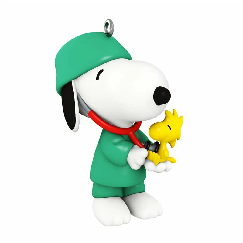 Woodstock makes a star patient for doctor Snoopy in this cute Christmas tree ornament. Dressed in medical scrubs, the compassionate canine uses his stethoscope to listen to his feathered friend’s heart in this fun addition to the Spotlight on Snoopy collector’s series. Perfect for a Peanuts collection, it’s also a fun gift for doctors, nurses or anyone in the health care field. 23rd in the Spotlight on Snoopy Hallmark Series.