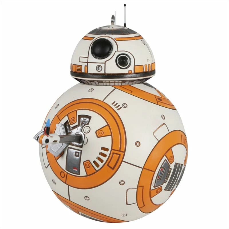 Show your support for the Resistance when you display this Christmas tree ornament featuring Poe Dameron’s loyal and resourceful astromech droid, BB-8, giving a thumbs-up. Press the button to hear some of BB-8’s iconic sounds from Star Wars: The Force Awakens (battery-operated). Requires 2 LR44 batteries.
