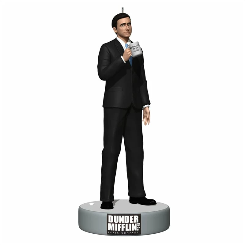 As Scranton branch Regional Manager for the Dunder-Mifflin Paper Company, Michael Scott believes himself to be an exceptional leader and mentor. This Christmas tree ornament features the beloved character with his iconic “World’s Best Boss” coffee mug. Press the button to play some of Michael’s most memorable phrases, including “It’s about to get all stupid up in here” and, of course, “That’s what she said” (battery-operated). Fans of the hilarious and irreverent documentary-style sitcom “The Office” might even be afraid of how much they love this decoration.