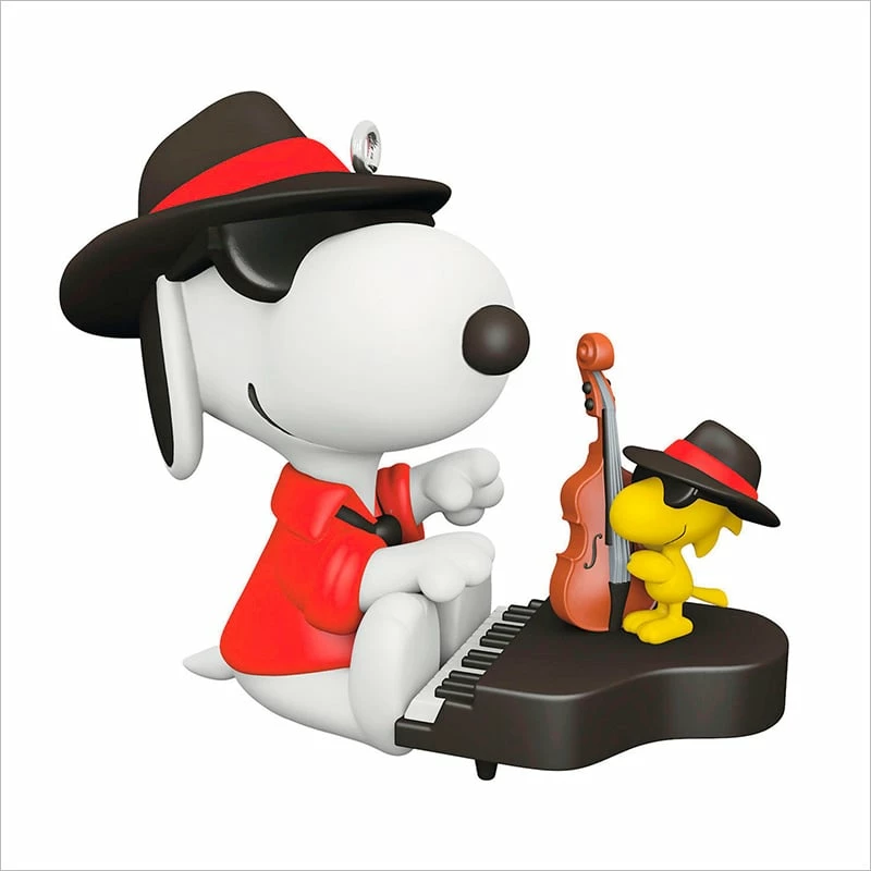 Everyone’s favorite Peanuts pals are ready to jazz up your holiday season! Decked out in fedoras and dark sunglasses, Snoopy tickles the ivories while Woodstock, perched on the piano, strums a smooth tune on bass in this cool Christmas tree ornament. Part of the Spotlight on Snoopy series, the whimsical decoration is a wonderful addition to your Peanuts collection.