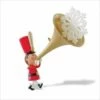Wearing his best dress uniform, this marching toy soldier trombonist confidently carries his trombone, which features a glittery snowflake design. You’ll love displaying this cute Christmas tree ornament that provides a bit of whimsy for the holiday season.