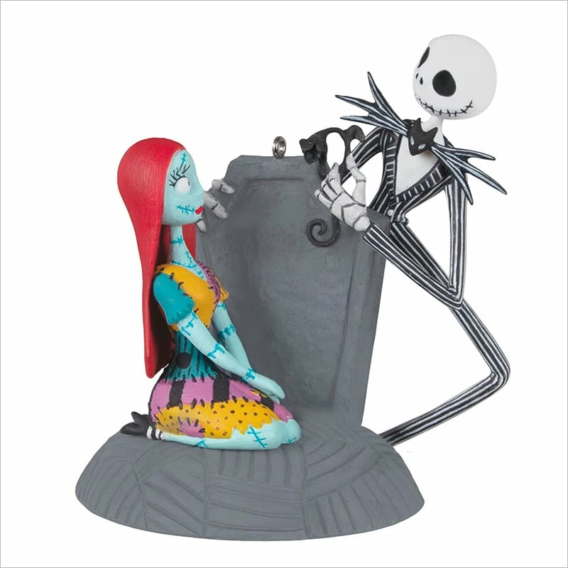 Jack Skellington and Sally, a couple that’s simply meant to be… on your tree! Set in the cemetery, this “The Nightmare Before Christmas” Christmas tree ornament design features the Pumpkin King leaning around a tombstone to gaze upon his stitched-up ragdoll sweetheart.