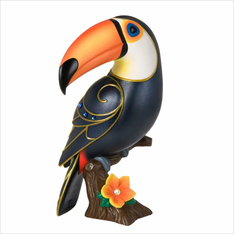 This gorgeous, gilded toucan is ready to fly onto the branches of your Christmas tree this holiday season. Designed by Keepsake Artist Emma Leturgez-Smith, the tropical toco toucan perches atop a blooming branch. Glistening with metallic gold and gem accents, this KOC member exclusive Christmas tree ornament is sure to brighten your holidays.