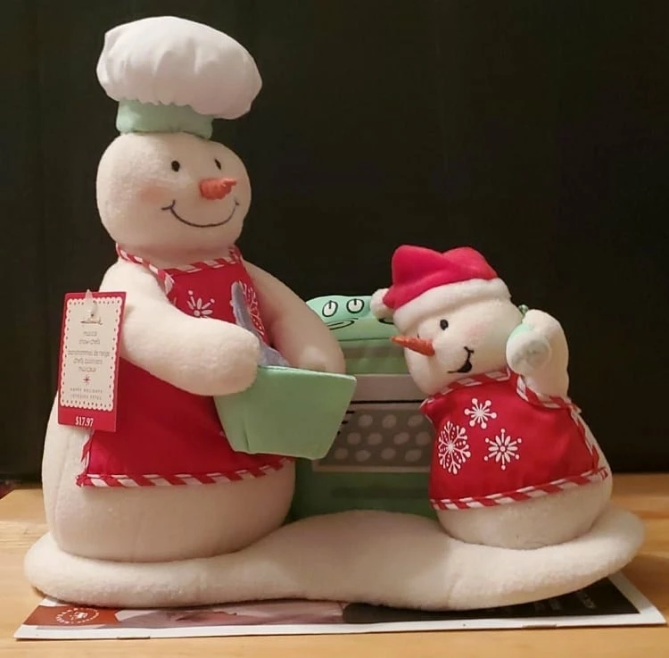 When you press the button on the stove, the child and the snowman sing and dance to “Jingle Bells”!