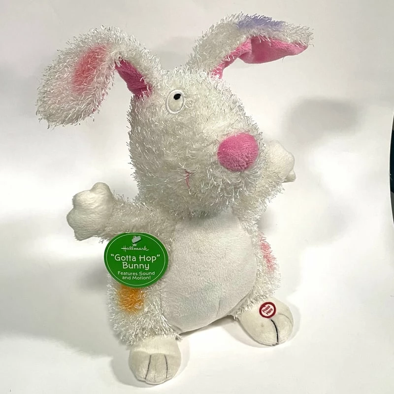 *This is an oversized item that will have an extra shipping charge of $3.00 applied at checkout. Press the button to see the bunny bounce and wiggle his ears while singing “Gotta Hop”.