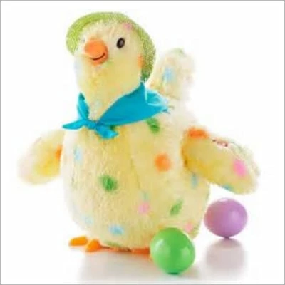 Squawkin Egg-Droppin Hen with sound and motion. For use with 3 included eggs. Press the button to see me bob up and down while I sing a song and lay an egg with every “squawk”.